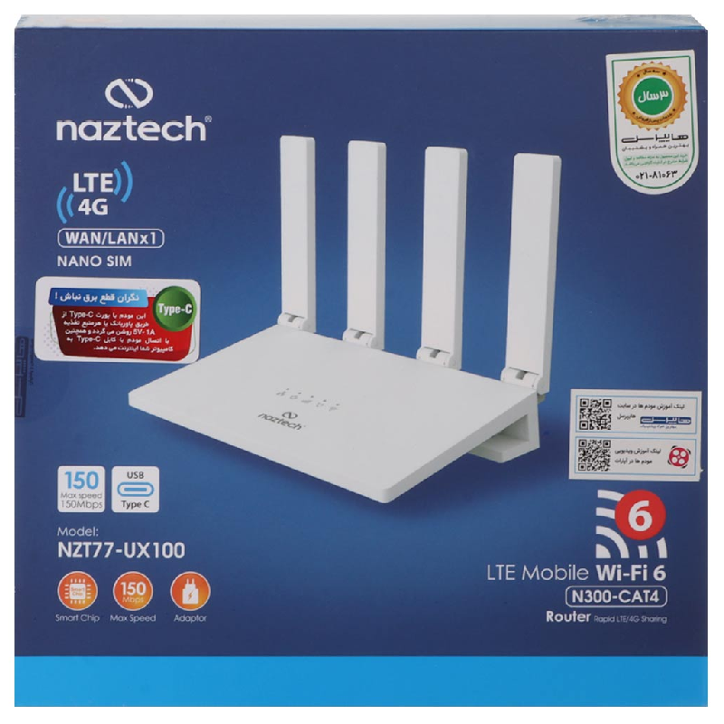 مودم روتر سیم کارتی 4G LTE نزتک تک پورت مدل NZT-77UX100